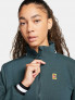 Whether you're warming up before a match or lounging at home, this sweat-wicking 1/2-zip top is a great pick. Striped taping on the cuffs and the back of the mock neck adds classic style while a cropped length and loose fit allow you to feel free in your movement—on and off the court. Soft French terry fabric adds just the right amount of warmth for year-round comfort. Women's French Terry Tennis Top.