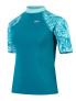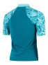 Sun protection swimwear for the beach, board and beyond. Snug-fitting in a pull-on style, this teal-coloured Short Sleeve Rash top includes sleeves printed with our pretty leaf graphic