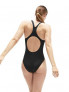 Supercharge your training with standout digital prints. Make an entrance wearing this eye-catching black based Medalist swimsuit, featuring a high-energy wave inspired print in bold saturated colours. The medalist design aids shoulder movement and flexibility so you can fly through sets and drills without feeling held back. The suit is also fully front lined for comfort and modesty in and out of the water. Made to withstand daily swim sessions, our ECO Endurance+ fabric is 100% chlorine resistant, quick-drying and made using 50% recycled materials.