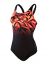 Make a statement in Boom logo prints. Celebrating the Speedo brand, our sporty women's Hyperboom Muscleback swimsuit showcases our iconic Boom logo in a graduated version of our ‘shattered’ print design with vivid shades of red and black. The muscleback design and medium cut leg offer flexibility and freedom of movement, so you can swim in comfort. Designed to be durable and better for the environment, the suit features our new ECO Endurance+ fabric which is 100% chlorine resistant, quick-drying and made from 50% recycled materials.