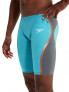 Feel unstoppable wearing Speedo innovation, developed by swimmers for swimmers. The Fastskin LZR Pure Intent 'Aqua Beam' Jammer in Light Aquarium & USA Charcoal features compressive dual layers and ergonomic seam construction designed to connect key muscle groups for greater power return. Textured fabric zones target drag reduction so you get the very best from your swim, and the triple fabric construction with bonded seams has been designed to enable greater movement. The regular waist jammer style offers greater flexibility and may be preferred by breaststroke and IM swimmers. This product has been fully approved by FINA. Men's jammer.